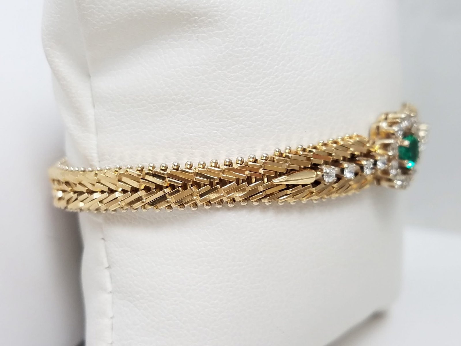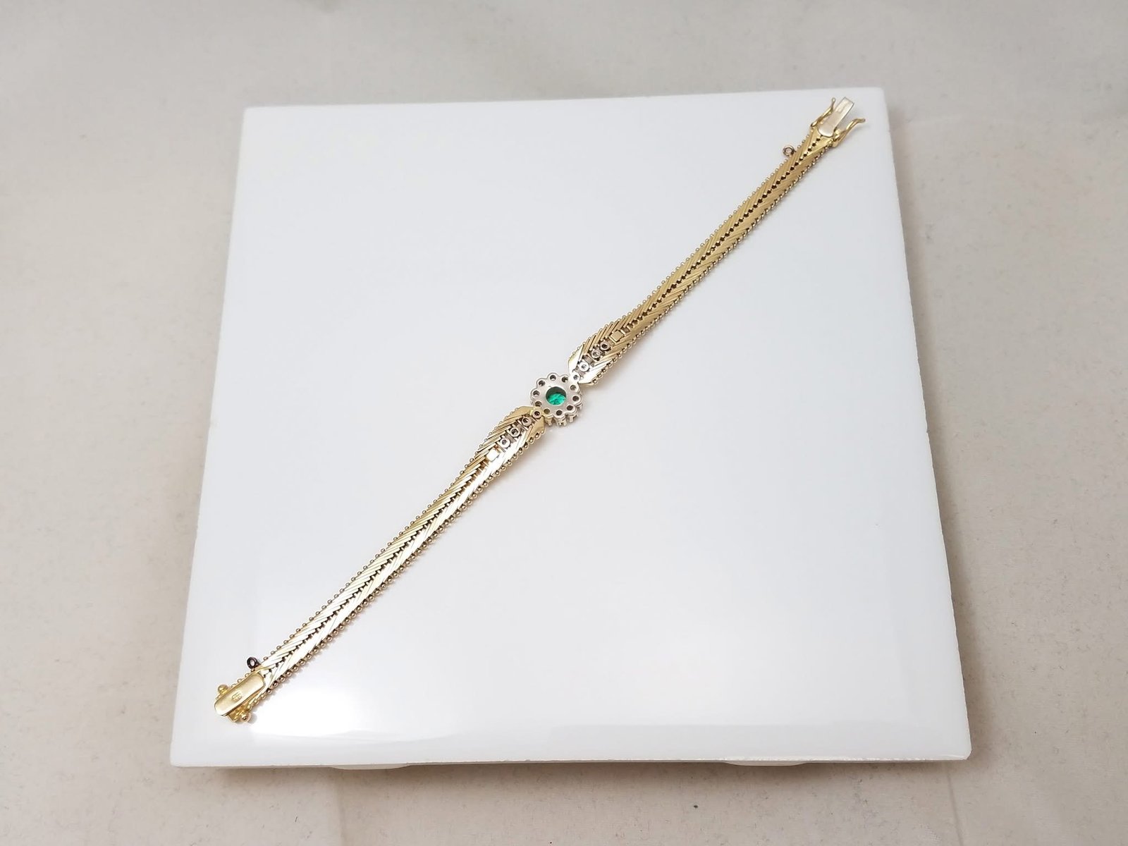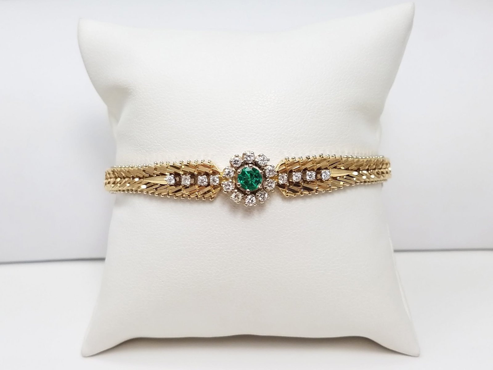 Exquisite 7″ 14k Yellow Gold Natural Emerald Diamond