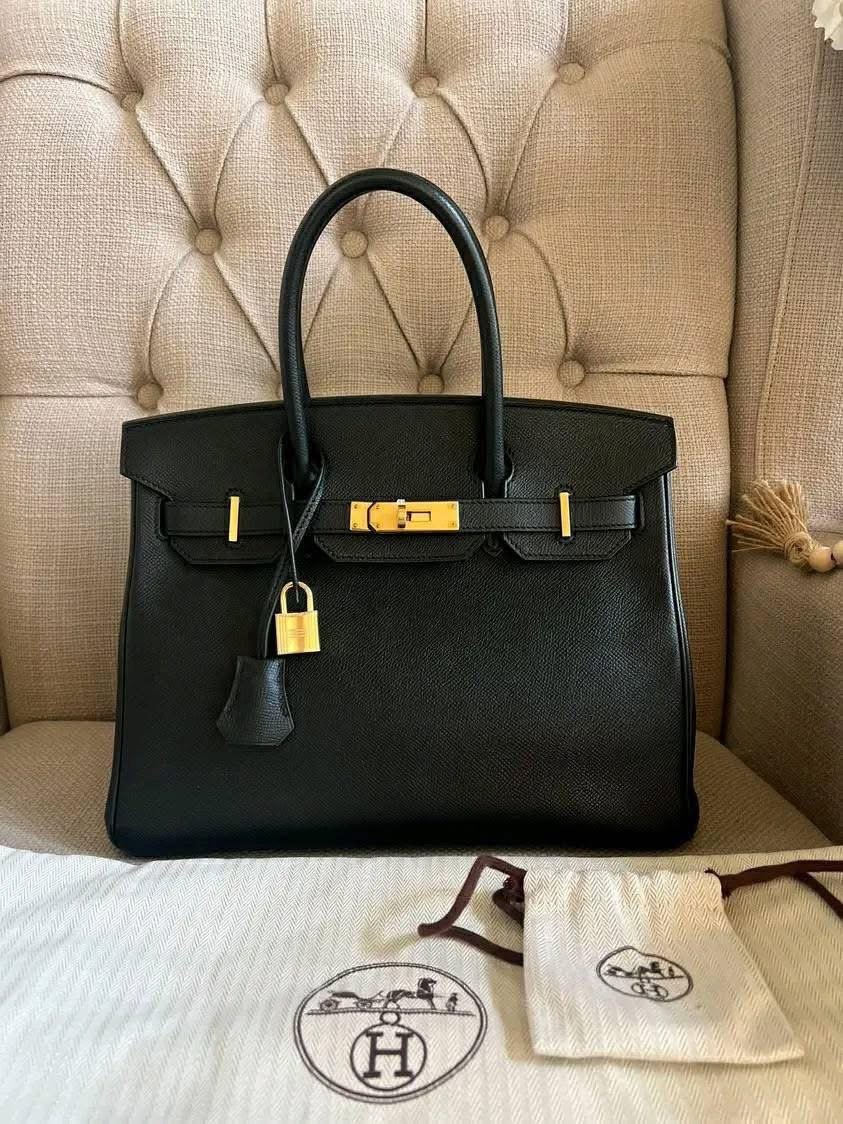 This iconic Birkin 30 features an all time favorite Noir color, one of the most popular and sought after color in the H repertoire! Crafted from Epsom leather, known to its lightweight and shape-holding qualities, Completing the look of this bag is stunning Gold hardware on the clasp, studs, and lock. At GREAT PRICE too!!